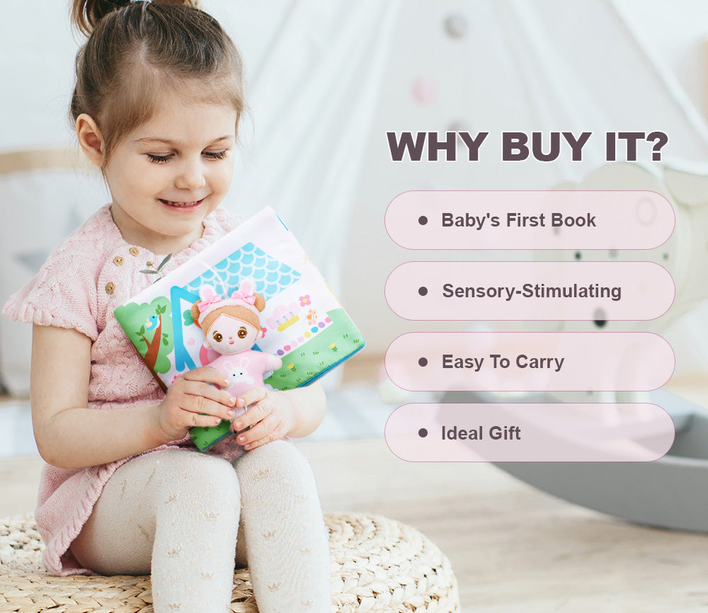 Crinkly and squeaky sounds included in the cloth book can provide auditory stimulation that promote imaginative play for all ages.