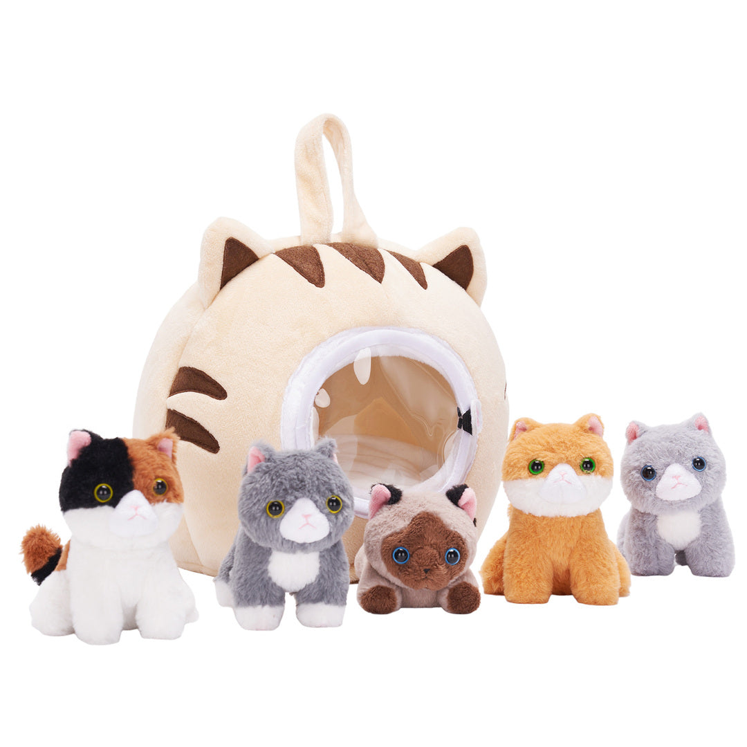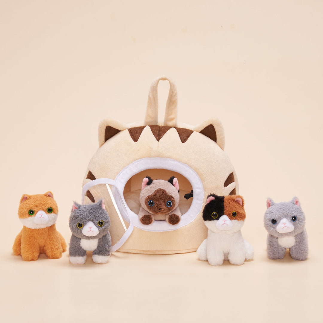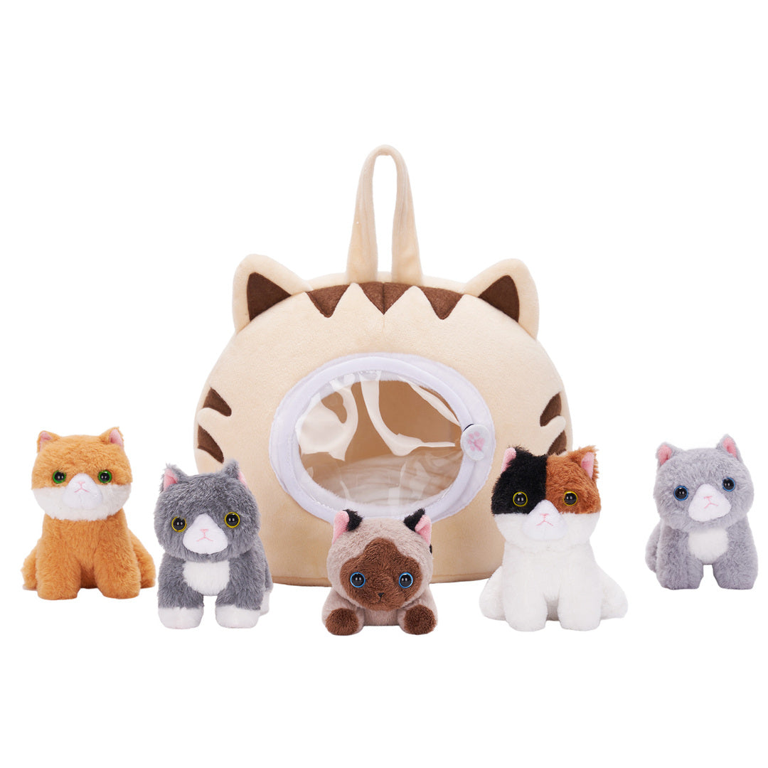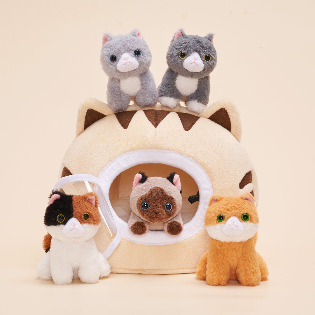 The kitties are so cute and the cat house is constructed well except for the fastener of the plastic window at the front. The small pink fabric button came off the thread immediately. It is something i can fix easily, but it was disappointing. A velcro closer might have been better? Our little girl absolutely loves it though, so i still give this product a high review.