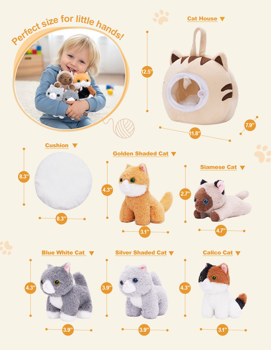 The house and cats are so soft and cute I can’t wait to give it to my granddaughter for Christmas .