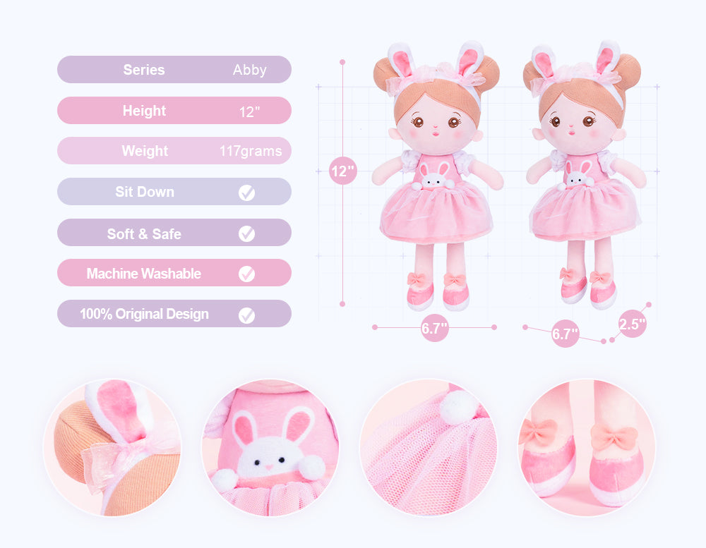 Our dolls are made of high-quality A-grade fabrics, which are super soft, safe, non-toxic, sensitive-skin-friendly, machine washable.
