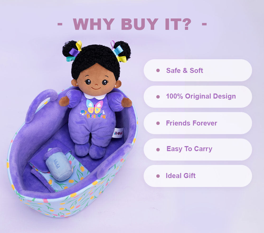 Our dolls are made of high-quality A-grade fabrics, which are super soft, safe, non-toxic, sensitive-skin-friendly, machine washable.
