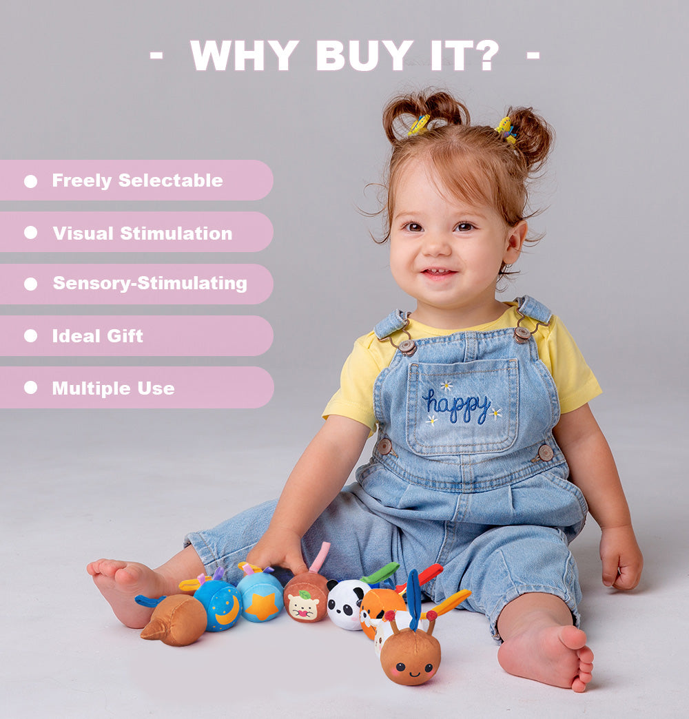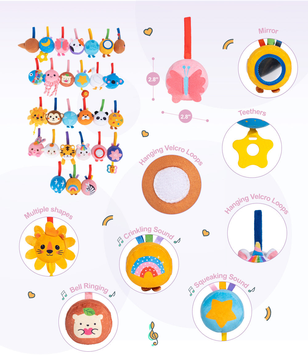 The toys are full of fun surprises, bright colors and gorgeous patterns for baby to discover, which can greatly help baby develop eye tracking skills.