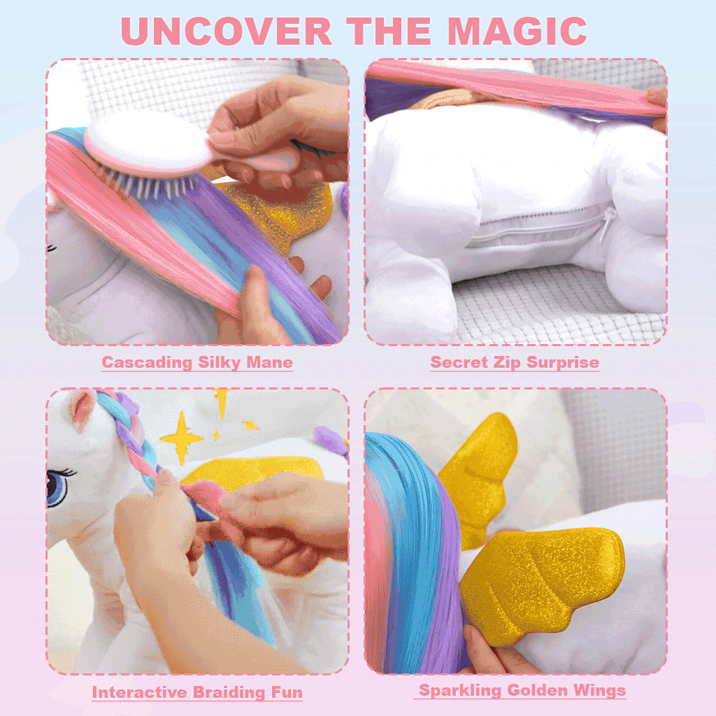 Every detail is made for love and durability. ① Embroidered Eyes: For safe, sweet gazes. ② Soft Horn: Made for gentle boops. ③ Silky-Smooth Mane: Irresistibly touchable rainbow hair. ④ Machine Washable: For easy clean-ups after magical adventures. Certified Safe: Meets EN71, ASTM F963-16, EU-CE, CPC, and UKCA standards.