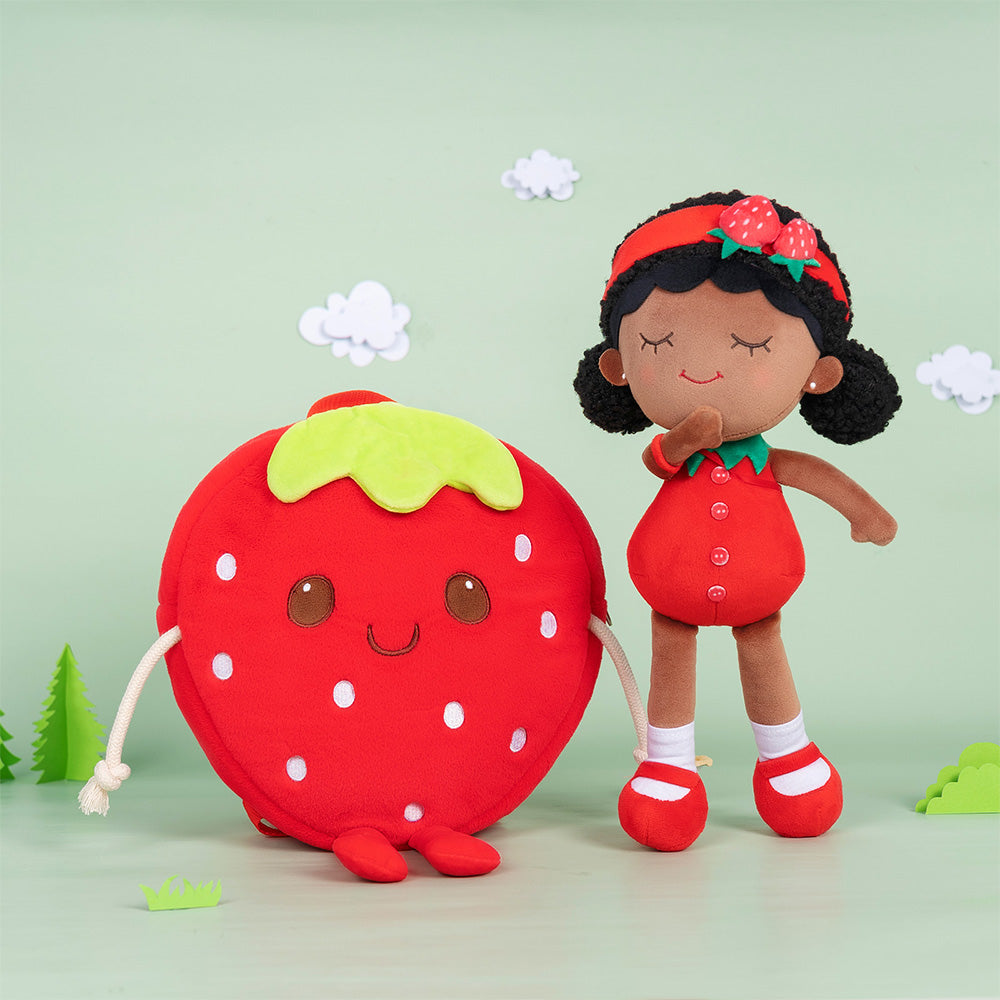 Personalized Deep Skin Tone Plush Red Strawberry Doll