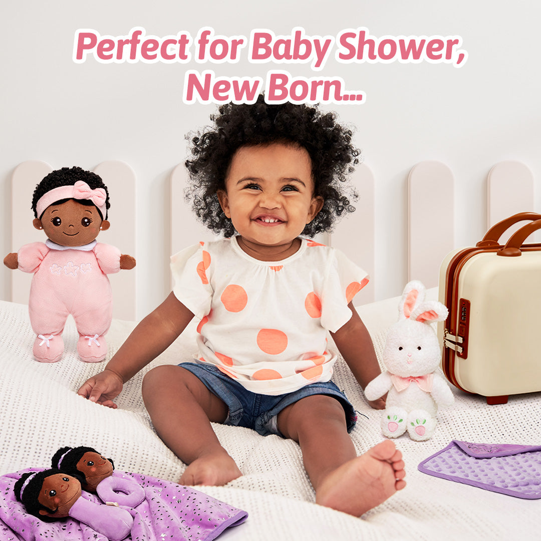 This plush baby doll is about 15” in size and weighs only about 6 ounces. It is ideal for children to play or hug it to sleep, providing kids with more security.