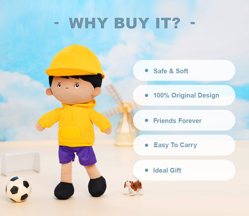 Our dolls are made of high-quality A-grade fabrics, which are super soft, safe, non-toxic, sensitive-skin-friendly, machine washable.
