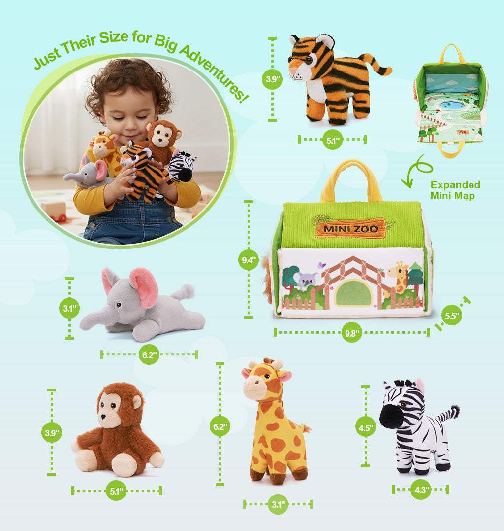 Our plush zoo playset with 5 adorable animals is the perfect gift to inspire creativity, learning, and endless storytelling for toddlers.