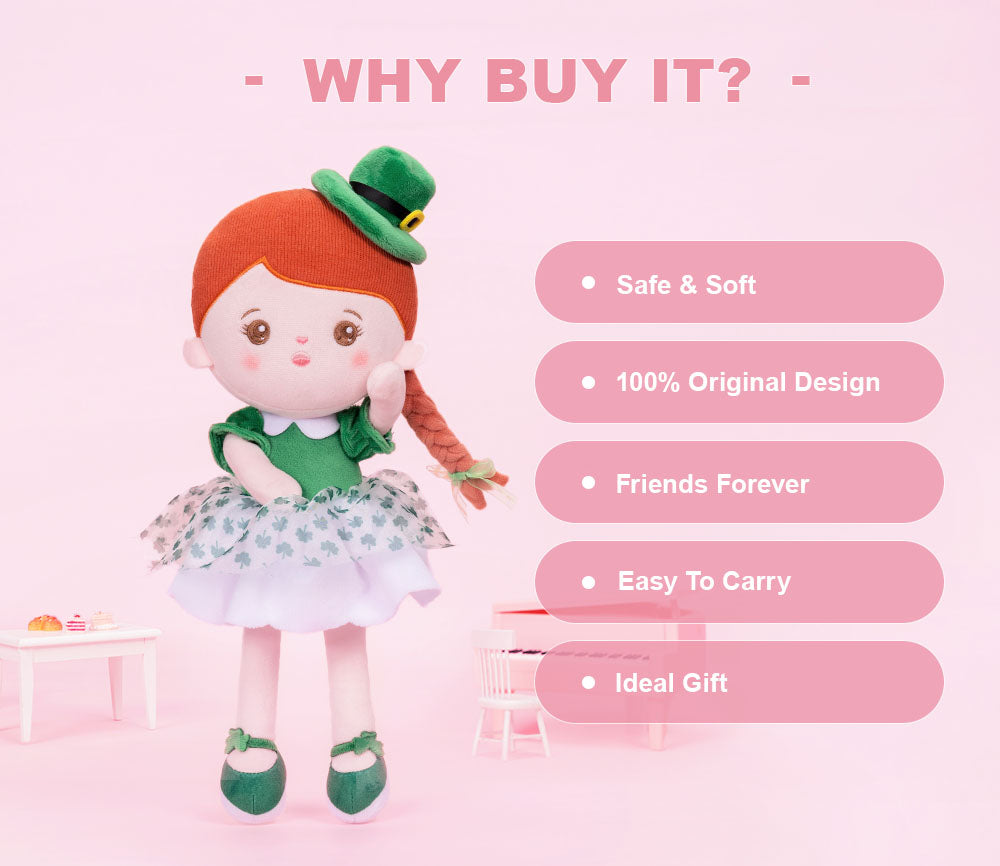 Our dolls are made of high-quality A-grade fabrics, which are super soft, safe, non-toxic, sensitive-skin-friendly, machine washable.